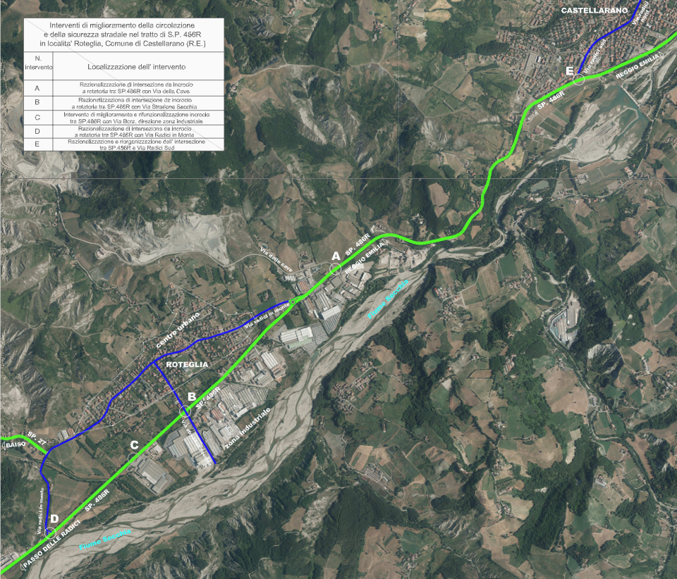 Nell’immagine allegata e’ indicata con la lettera E la posizione prevista per la nuova rotatoria.