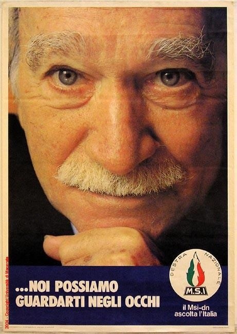 Non a caso, negli anni scorsi, Giorgia Meloni ha voluto rifare un manifesto di Almirante con il medesimo slogan “Noi possiamo guardarti negli occhi”, che sintetizza il modo onesto e trasparente di intendere e vivere la politica.