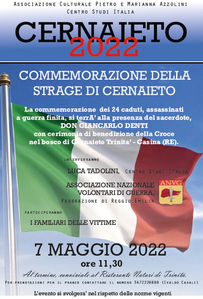 L’ordine però non venne eseguito per l’intervento di un superiore ed i partigiani legarono i prigionieri tra di loro, con del filo di ferro e li avviarono a piedi verso la “prigione” partigiana di Vedriano di Trinità – Canossa (RE), dalla quale non fecero più ritorno. In seguito vi fu un “processo” farsa della polizia partigiana e i 21 soldati vennero riconosciuti prigionieri di guerra, in spregio alla Convenzione di Ginevra vennero poi massacrati (unitamente a tre donne), anche se nel contempo la guerra era terminata. Sono passati oltre settant’anni dalla tremenda fine dei prigionieri trucidati nel bosco di Cernaieto e mai nessuna Istituzione li ha voluti ricordare, non sappiamo se per paura di ritorsioni o per ipocrisia. Nelle due fosse comuni nel bosco di Cernaieto sono stati rinvenuti resti di minorenni, di un padre massacrato assieme al figlio, di tre donne: Viappiani Paolina di 22 anni, Spaggiari Maria di 29 anni e un’altra non identificata.