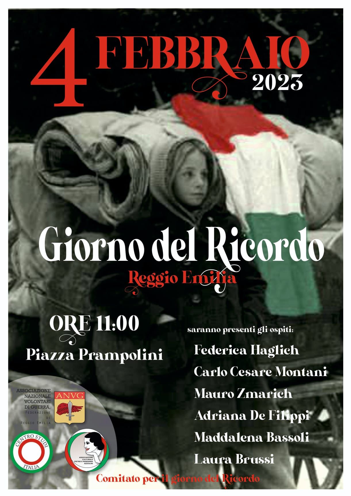 SABATO 4 FEBBRAIO 2023, alle ore 11, si svolgerà in Piazza Prampolini a Reggio Emilia l’annuale manifestazione dedicata alla Giornata del Ricordo, la ricorrenza – riconosciuta con legge della Repubblica Italiana – dedicata agli Italiani d’Istria e Dalmazia, Fiume e Terre Giulie, perseguitati, trucidati nelle foibe e costretti all’esodo dalle formazioni partigiane comuniste jugoslave di Tito.